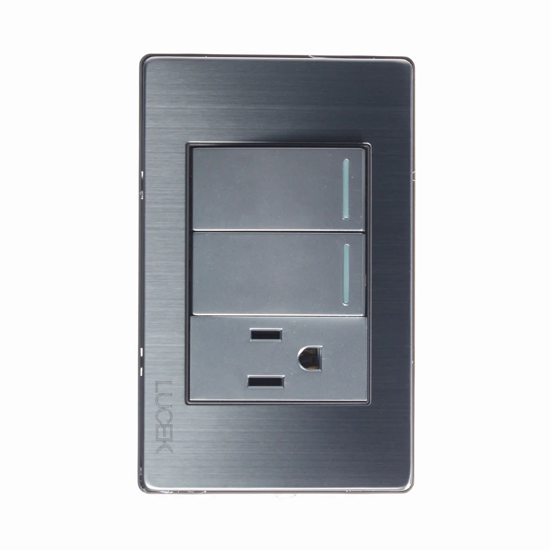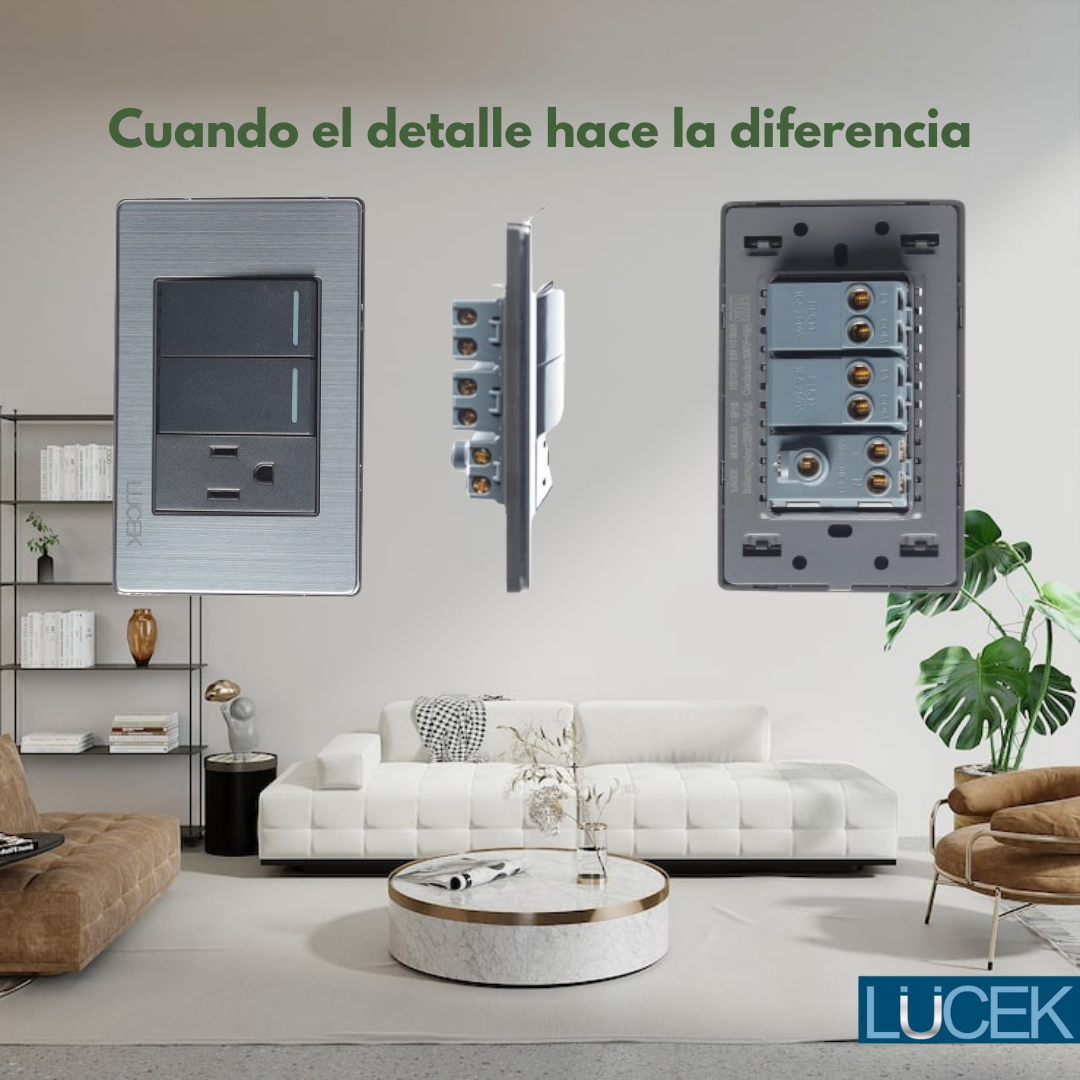 - Función: 2 interruptores + 1 contacto en una sola placa